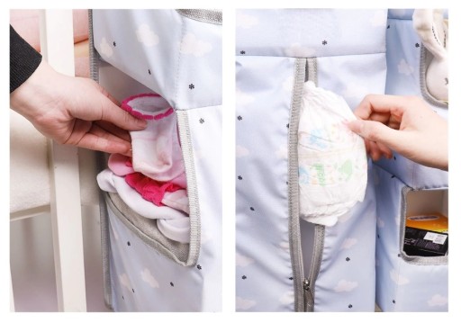 - liczne kieszonki oraz usztywniane półki pomieszczą wszelkie potrzebne artykuły i akcesoria do pielęgnacji dziecka