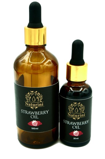 Olej z pestek truskawek Naturini tłoczymy na zamówienie ze starannie wyselekcjonowanych pestek truskawki. Charakteryzuję się on wysoką zawartością cennych wielonienasyconych kwasów tłuszczowych: Omega-3 (kwas linolenowy) i Omega-6 (kwas linolowy) i fitosteroli, które wspomagają utrzymanie prawidłowego poziomu cholesterolu we krwi wzmacniają układ odpornościowy. Jest on również bogatym źródłem minerałów i witamin w szczególności witaminy A i E czyli naturalnego przeciwutleniacza.