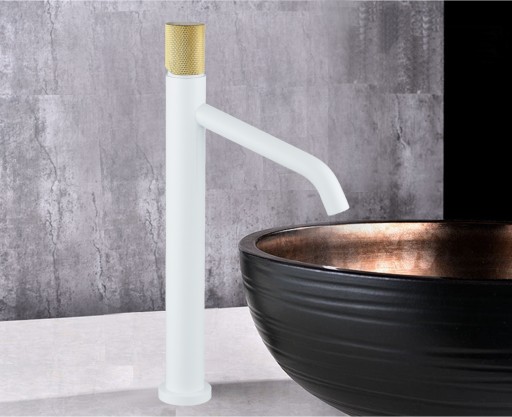 Mexen Rumba One - Bateria umywalkowa wysoka biało-złota