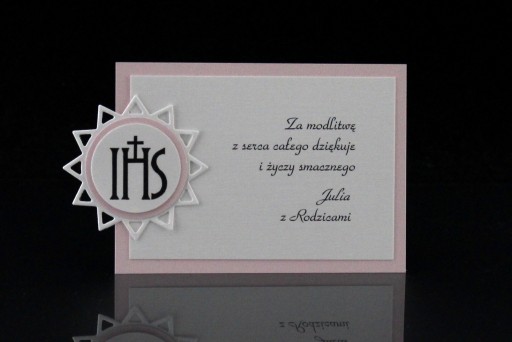 Istnieje możliwość umieszczenia własnych imion, dat komunii na karnetach oraz modyfikacji i wstawiania własnych wierszyków.