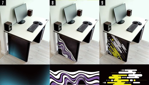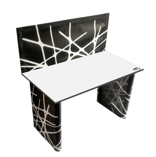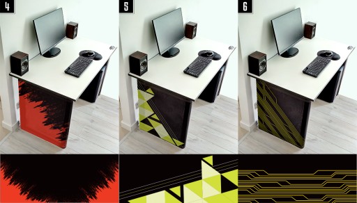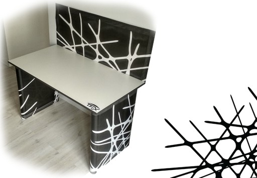 Dodatkowo aby podkreślić wyjątkowość stanowiska gracza w komplecie z biurkiem dołączony jest materiał który idealnie wkomponuję się za blatem na ścianie.