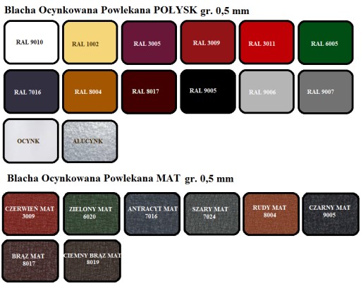 - wykonana z blachy ocynkowanej, powlekanej o grubości 0,5mm z europejskich hut zabezpieczona folią ochronną,