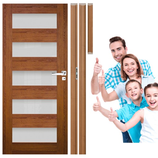 Proponowany model to skrzydło drzwiowe wykonane z ramiaków MDF uszlachetnionych okleiną drewnopodobną o zwiększonej odporności na zarysowania.