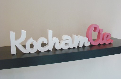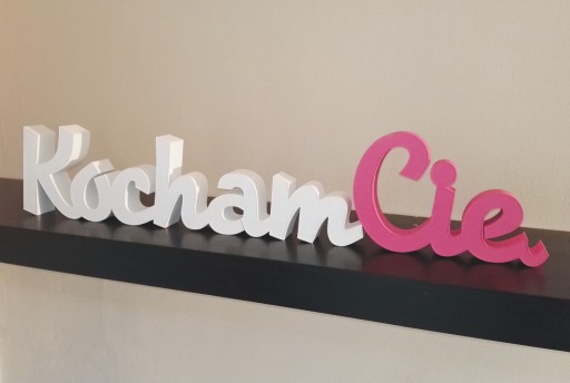 Napis wykonany jest z lekkiego styroduru o grubości około 3cm pomalowany farbami akrylowymi. Doskonale nadaje się jako oryginalna i efektowna ozdoba każdego wnętrza.