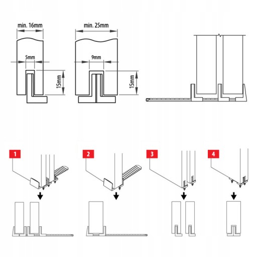 - 2 x górny prowadnik górny (do 1 skrzydła drzwi)
