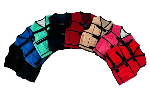 Kamizelki można prać w wodzie, jak zwykłą część garderoby, po wyjęciu woreczków z obciążeniem.