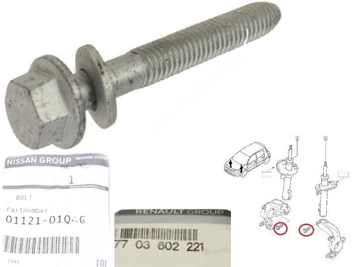 Nowa oryginalna Renault-Nissan śruba do mocowania amortyzatora przy zwrotnicy.