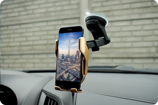 Wbudowany czujnik podczerwieni powoduje, że po położeniu telefonu na dolną podstawe ramiona uchwytu zacisną się automatycznie korzystając z wbudowanego mechanizmu elektrycznego. Nie musisz już nic wciskać, nic dociskać ani blokować. Wystarczy, że odłożysz telefon, a ramiona zacisną się automatycznie!