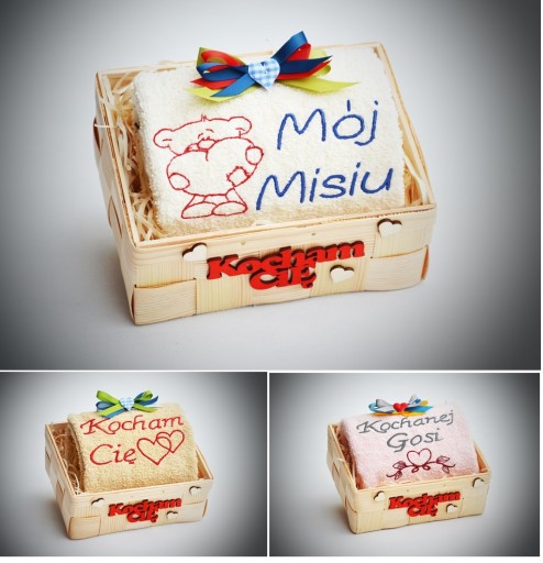 Każdy ręcznik pakowany jest elegancko w koszyk, celofan, rafię. Otrzymujesz gotowy prezent do wręczenia wraz z bilecikiem na życzenia.