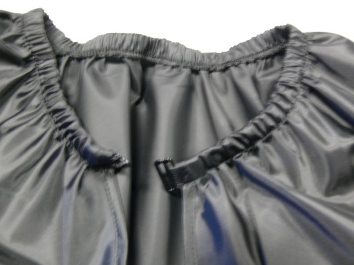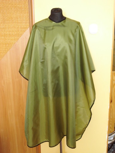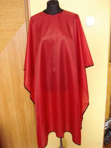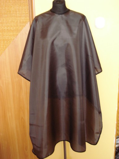 peleryna fryzjerska z zapięciem na haczyki metalowe powlekane, przy szyi gumka
