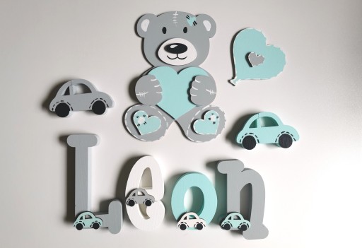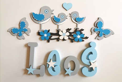 Do każdego zakupionego imienia (co najmniej 3 litery )otrzymujesz dwa duże 10 cm dekory nad napis oraz kilka małych dekorów naklejonych na literki w miejscach nacięć tak jak w poniższych naszych realizacjach w galerii.