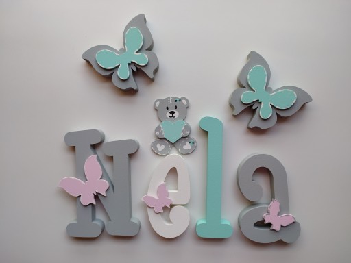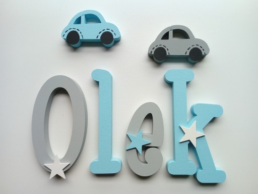 Przedmiotem sprzedaży są piękne ,ręcznie malowane i ozdabiane finezyjnymi dekorami z sklejki literki z, których możesz stworzyć imię twojego dziecka.