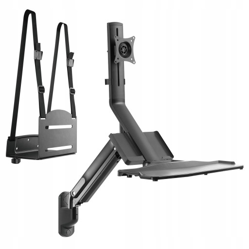 Wbudowaną sprężyna gazowa pozwala na płynną regulację wysokości, a dołączony uchwyt komputera umożliwia montaż komputera stacjonarnego PC na bocznym blacie biurka lub na ścianie.