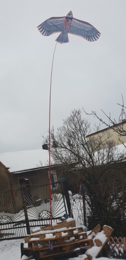 - latawiec wznosi się w powietrze już przy wietrze o prędkości 2km/h, makieta unosi sie w nieregularny sposób, co uniemożliwia przyzwyczajenie się ptakom do jego obecności,