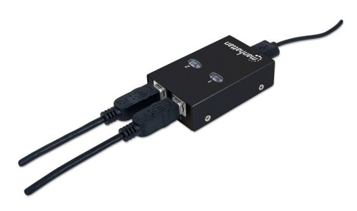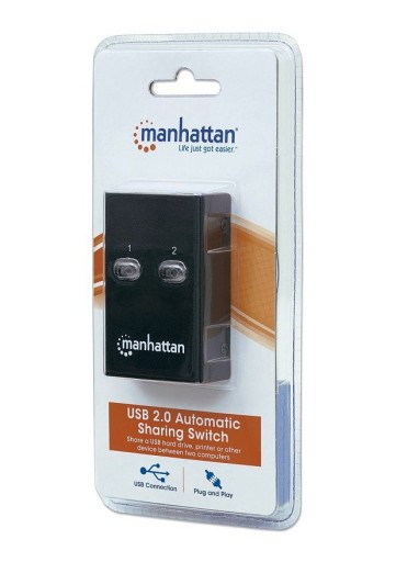 Automatyczny przełącznik USB 2x1 Manhattan 162005 umożliwia proste i wygodne współdzielenie jednego urządzenia peryferyjnego USB pomiędzy dwa komputery. Jest rozwiązaniem idealnym zarówno do użytku domowego jak i biurowego gdzie użytkownicy muszą współdzielić drukarkę, urządzenie wielofunkcyjne, skaner, zewnętrzny dysk pamięci USB lub inne urządzenie peryferyjne USB. Automatyczny przełącznik USB 2x1 Manhattan 162005 umożliwia ręczny wybór aktywnego portu komputera przy użyciu przycisków na przełączniku lub automatyczny, przełączany trybu w aplikacji z poziomu dołączonego oprogramowania.
