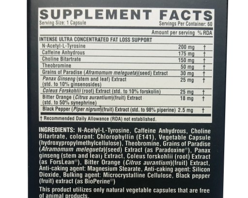 Preparat zawierający silnie działające, aktywne substancje. Produkt jednocześnie zmniejsza apetyt i powoduje wzrost poziomu energii, co przyczynia się do nasilenia wydatków energetycznych organizmu i maksymalizacji efektów procesu odchudzania się. Preparat polecany jest dla osób mających trudności z utratą „opornej” tkanki tłuszczowej, w okresie redukcji oraz dla osób aktywnych fizycznie i odchudzających się.