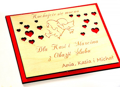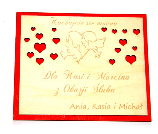 ДЕРЕВЯННАЯ ОТКРЫТКА С ГРАВИРОВКОЙ, дополнительные свадебные ПОЖЕЛАНИЯ