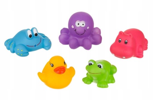 Wykonane z bezpiecznych materiałów, kolorowe zwierzaki uatrakcyjnią codzienną kąpiel malucha i zachęcą do zabawy. Zabawki stymulują koordynację wzrokowo-słuchową oraz motoryczną dziecka.