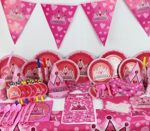 Duży zestaw różnych elementów, dzięki któremu w szybki i wygodny sposób zastawisz stół na przyjęcie swojego dziecka.