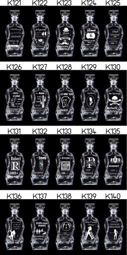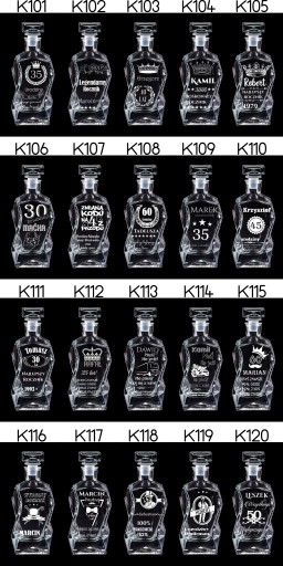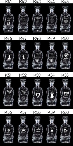 Możliwość zamieszczenia takich samych grawerów na skrzynce, karafce i szklankach. Wystarczy wszystko opisać w wiadomości podczas składania zamówienia.