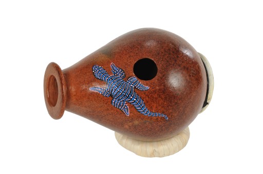 Zmiane wysokości dzwięku uzyskujemy poprzez zakrywanie dłonią jednego z otworów wylotowych. Można tez grać palcami na całym korpusie lub membranie.