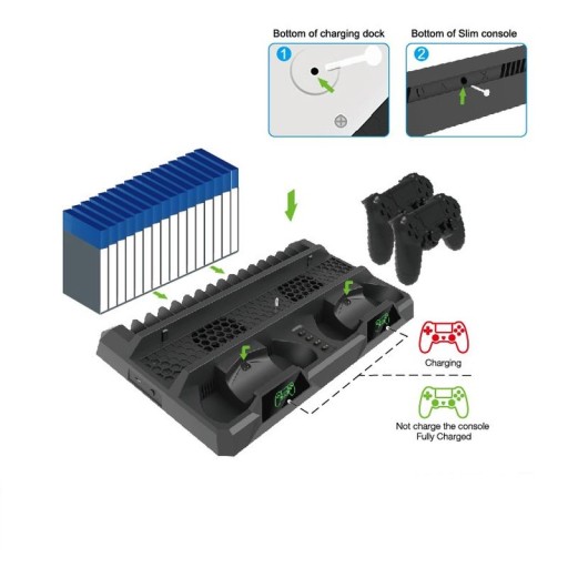 Podstawka chłodząca 3w1 do PlayStation 4 , SLIM i PRO ze stacją dokującą do 2 padów i stojakiem na 16 gier firmy DOBE, model TP4-18119.