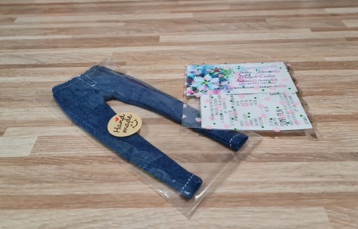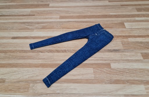 Przedmiotem sprzedaży są spodnie rurki dla lalek z plastikowymi nogami na gumce. Uszyte z granatowej dzianiny jeans. Na żywo bardziej granatowe równie fajne. Ozdobione srebrnym koralikiem.