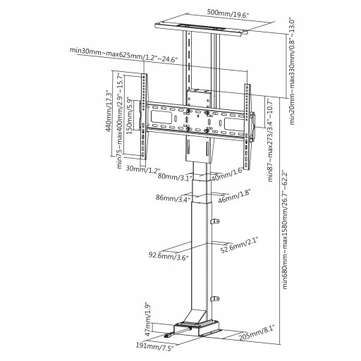 - Elektryczny uchwyt telewizora z regulacją wysokości w zakresie 68 - 158 cm