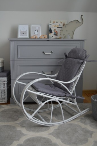 Fotelik bujany wiklinowy dla dzieci w kolorze szarym.