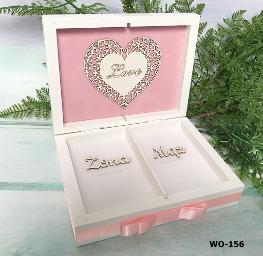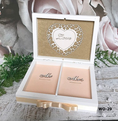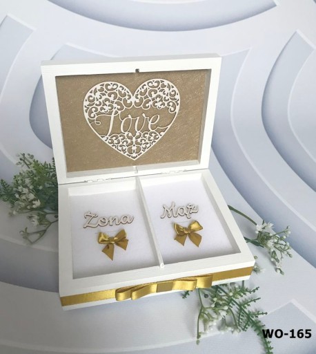 Pudełko na obrączkI wykonane z drewna , malowane na biało