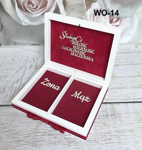 Kokadra na pudełku w kolorze stanowiacej komplet z wybranym wykończeniem pudełka na obrączki ( do wyboru z wzornika)