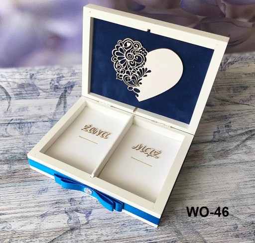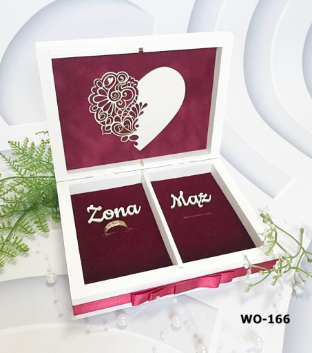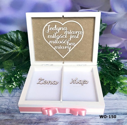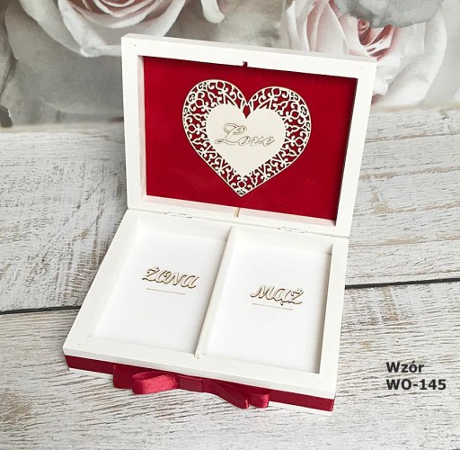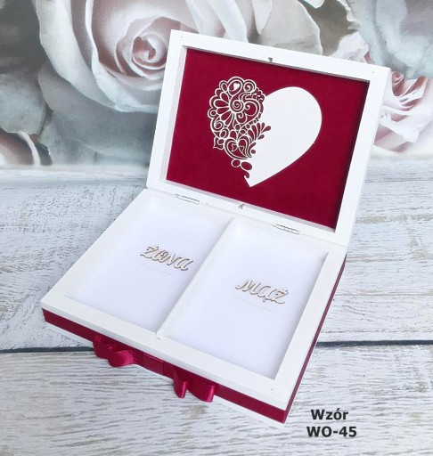 Pudełko na obrączkI wykonane z drewna , malowane na biało