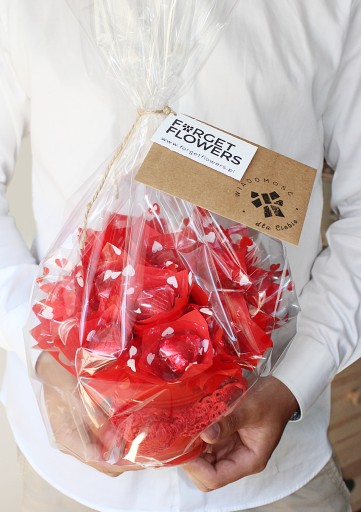 Do bukietu dodamy gratis Twoje życzenia w eleganckiej kopercie. Paczka będzie ozdobnie zapakowana i z pewnością wzruszy obdarowaną osobę. Nie ma lepszego sposobu na personalizowaną słodką niespodziankę na Walentynki!