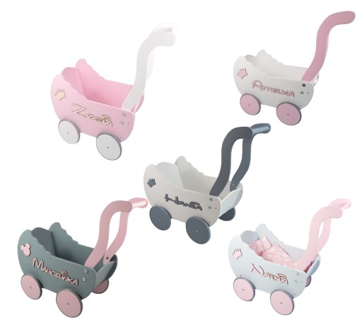 Деревянная кукольная коляска + ИМЯ + ПОСТАЛЬНЫЕ ПРИНАДЛЕЖНОСТИ +