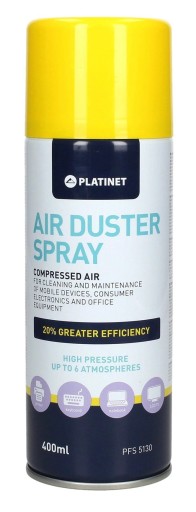 Sprężone powietrze do usuwania zanieczyszczeń z trudno dostępnych miejsc.Łatwość oraz duże bezpeiczeństwo użycia pozwala na nieinwazyjne usuwanie zanieczyszczęń z urządeń elektronicznych, foto-optycznych,mechaniki precyzyjnej, elektromechanicznych i wielu innych. Kurz i inne zanieczyszczenia wydmuchiwane są powietrzemsprężonym pod dużym ciśnieniem. Nie pozostawia żadnych śladów czyszczenia. Pojemność 400ml.