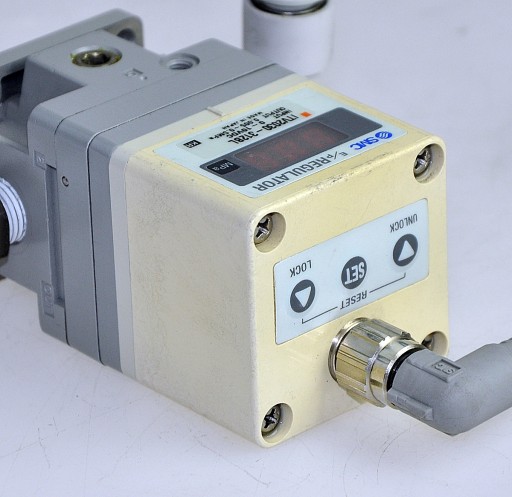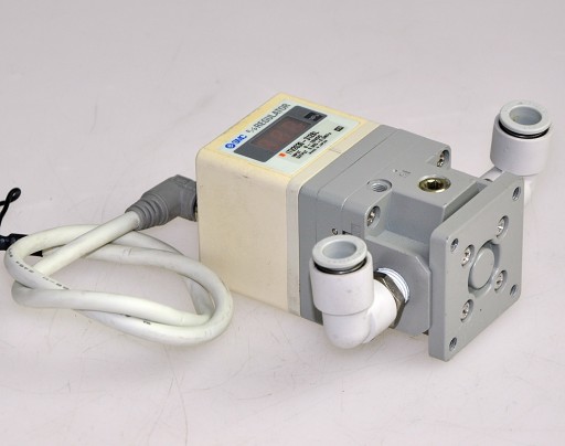 Używany, całkowicie sprawny, programowalny sterownik proporcjonalny podciśnienia i nadciśnienia w zakresie od 0,005 do 0,5 MPa. Sterowanie odbywa się sygnałem elektrycznym 0 do 10V. Zasilanie DC 24V. W zestawie jest elektryczna wtyczka z odcinkiem przewodu zasilającego i sygnałowego oraz dwie szybkozłaczki pneumatyczne i tłumik spustu. Więcej informacji o produkcie dostępne na stronach producenta. Symbol produktu: ITV2030-312BL, producent firma SMC