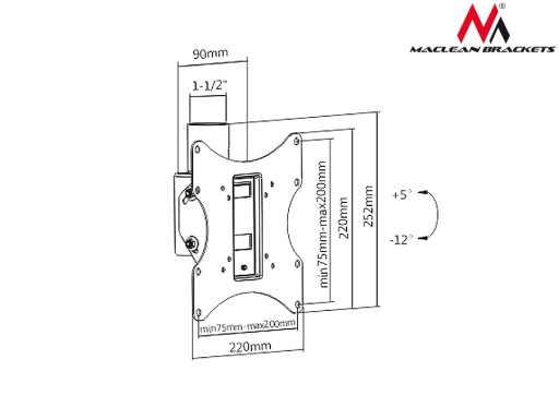 Wieszak, ramię teleskopowe oraz płyta stanowią kompletny zestaw do montażu uchwytu renomowanej firmy Maclean Brackets.