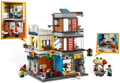 - Zestaw LEGO® Creator 3 w 1 umożliwia zbudowanie trzech różnych modeli. Sklep zoologiczny i kawiarenkę można przebudować na wielopiętrowy bank lub ulicę handlową z tramwajem.