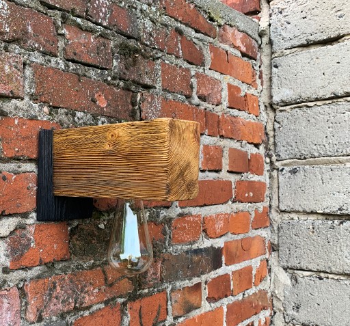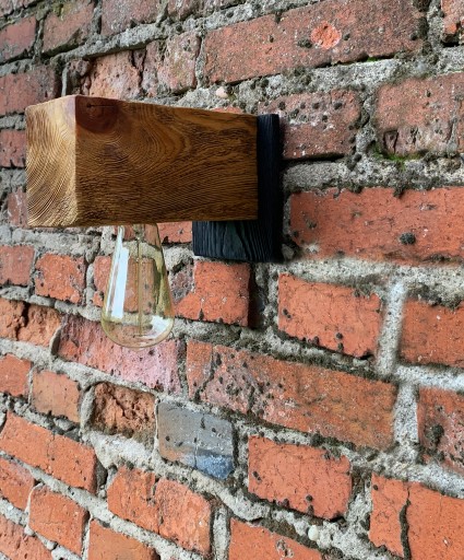 Drewniany kinkiet w stylu LOFT - Postarzane drewno - z przewodem o długości 200cm