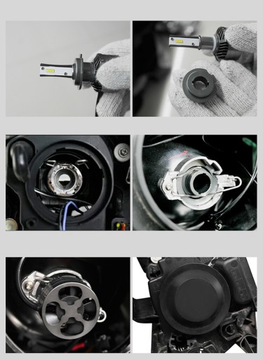 - Żarówkę umieścić w kołnierzu trzonka - wielostopniowa regulacja kołnierza umożliwia dostosowanie kąta padania światła na odbłyśnik i drogę. Żarówkę można obracać o 360° w celu znalezienia odpowiedniego kąta padania światła na oświetlany obszar przed pojazdem
