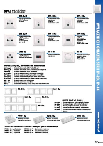 Na naszych innych aukcjach znajdują się gniazda pojedyncze, potrójne, antenowe, wyłączniki oraz ramki z serii OPAL i OPAL-bis.