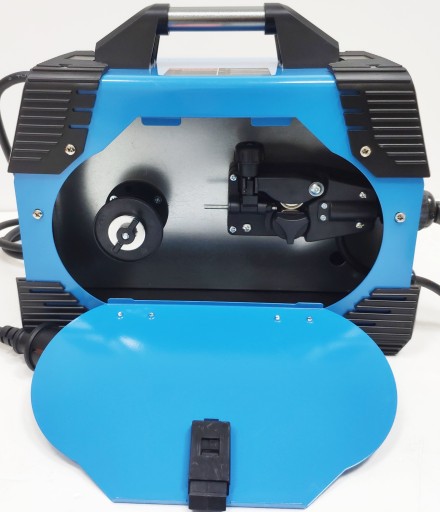 Spawarka wyposażona jest w zintegrowany uchwyt spawalniczy MIG, przewód elektrodowy oraz przewód masowy z zaciskiem kleszczowym.