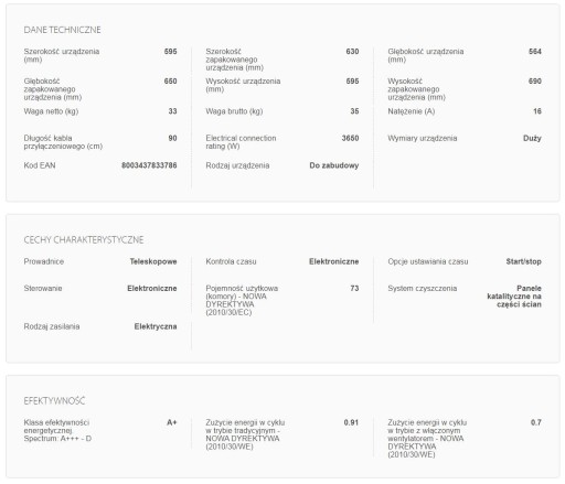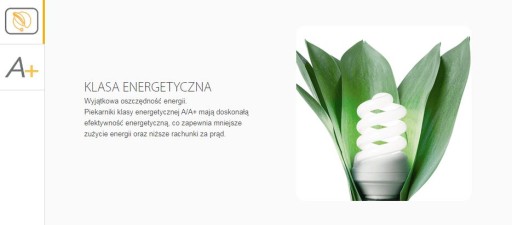 Klasa energetyczna piekarnika. Im wyższa klasa, tym większa wydajność energetyczna urządzenia.