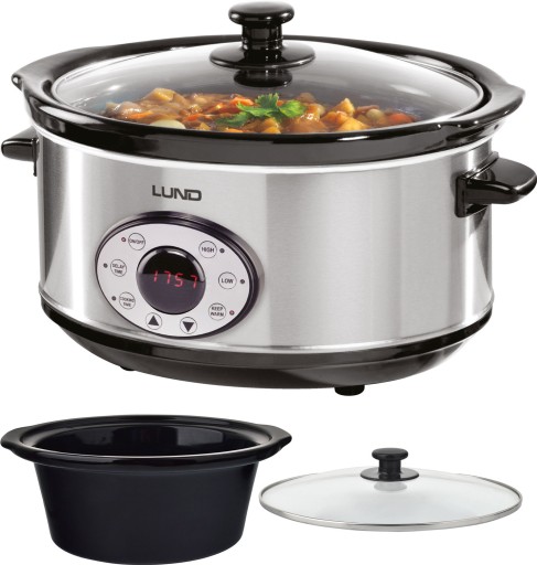 Czytelny wyświetlacz LCD oraz diody informujące o aktywnych ustawieniach ułatwiają korzystanie z wolnowaru.