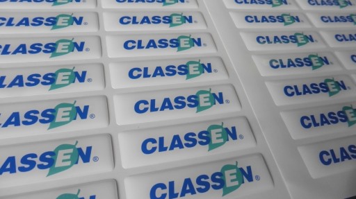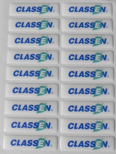 Druk 4+0 CMYK Wydruk jest wycinany za pomocą plotera w pożądanym kształcie.Następnie powlekany jest przezroczystą żywicą. Z uwagi na fizyczne właściwości żywicy projekt nie może zawierać ostrych rogów - wszystkie rogi muszą być zaokrąglone.