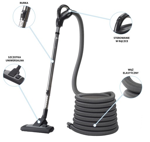 Rączka węża NEXE wyposażona w trójstopniową regulację siły ciągu przydatna przy odkurzaniu delikatnych powierzchni