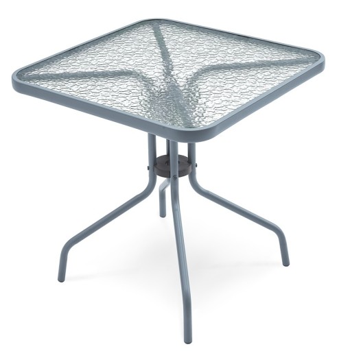 SZKLANY STOLIK OGRODOWY idealny do Twojego ogrodu. Stelaż został podwójnie lakierowany proszkowo, co idealnie przystosowuje ten produkt to zastosowania wewnątrz jak i na zewnątrz. Użyte materiały nie wymagają częstej konserwacji, są odporne na warunki pogodowe i nie wymagają specjalnych środków do pielęgnacji. Nóżki są dodatkowo zaopatrzone w nakładki z tworzywa sztucznego. Stół posiada blat z białej hartowanej szyby o gr. 5 mm.