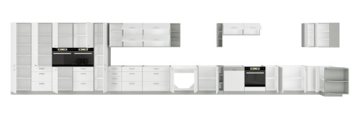 Istnieje możliwość dokupienia innych szafek (rozmiar, kolor), aby skompletować inny układ lub mniejszą kuchnię.