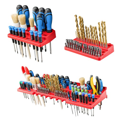 Świetny dodatek stanowią wytrzymałe uchwyty i półki narzędziowe pomagające przechowywać dłuższe narzędzia tj. młotek, wiertła, klucze, śrubokręt czy kombinerki. Dzięki uchwytom najważniejsze narzędzia będą zawsze pod ręką i zajmą znacznie mniej miejsca w warsztacie. Praktyczne oraz świetnie wyglądające rozwiązanie.