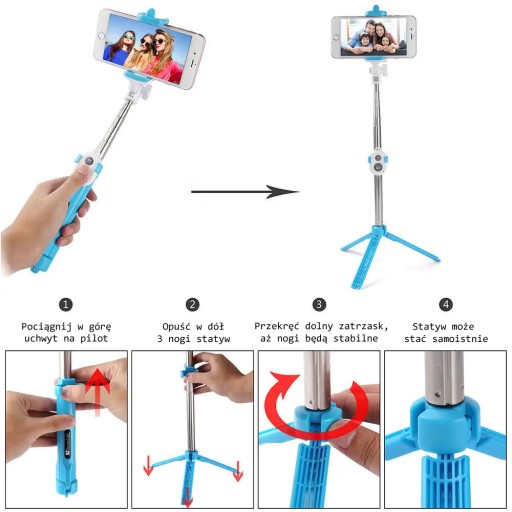 ◇ Selfie Stick łączy w sobie funkcjonalność obrotowej głowicy i rozkładanych nóżek, pozwalając na szybkie przekształcenie go w tripod. Dzięki temu rozwiązaniu możesz łatwo przejść od robienia selfie do stabilnych zdjęć grupowych lub krajobrazowych.
